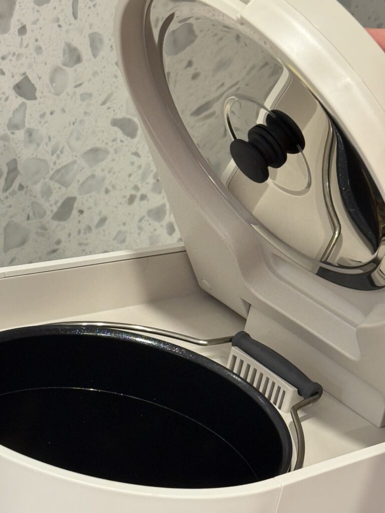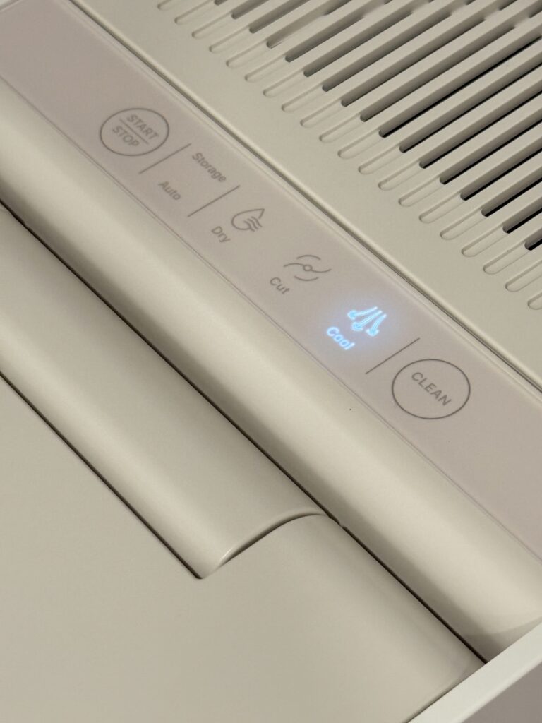 제품은 생각보다 컴팩트한 디자인이라 주방 한쪽에 두어도 공간 차지를 많이 하지 않았습니다. 깔끔한 화이트 톤이라 인테리어에도 자연스럽게 녹아들었고, 상단의 버튼 조작도 직관적이라 사용하기 편리했어요. “START/STOP”, “AUTO”, “DRY”, “CLEAN” 등 필요한 기능이 버튼 하나로 해결되니 부모님이나 남편도 쉽게 사용할 수 있었습니다.